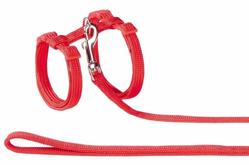 Nylonový set postroje a vodítka pro kočku. Univerzální nastavitelná velikost postroje 37-47cm. Délka vodítka 120cm. Šíře 10mm. Barva červená. prečítať celé