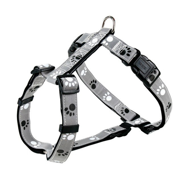 Reflexní postroj stříbrný s tlapkami je vyroben z odolného nylonu s plastem.<br/><br/>Vlastnosti:<br/><br/>- Postroj je vysoce reflexní a tím zvyšuje bezpečnost vašeho psa na procházkách<br/>- Je...