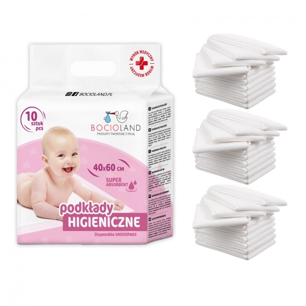 Jednorázové přebalovací podložky 40 x 60 cm.Pražce Bocioland dokonale chrání postýlku proti nečistotám.Určeno pro ženy v šestinedělí a při péči a přebalování miminek.Vrchní vrstva je speciální a na dotek příjemná netkaná textilie, která odvádí tekutinu uvnitř podkladu.Absorpční celulózová vložka...