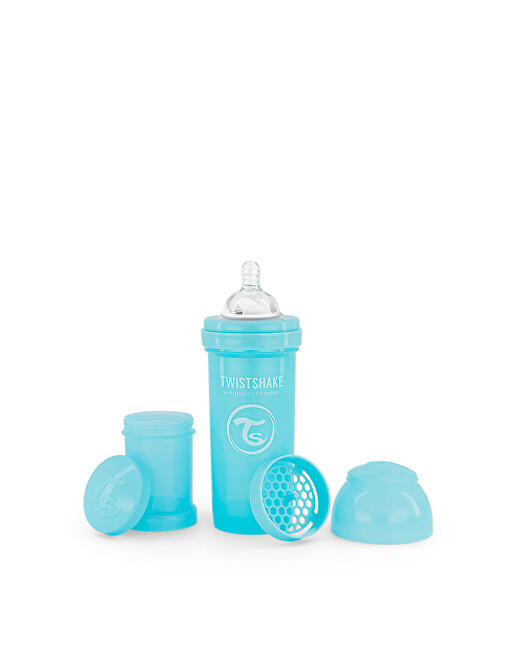 Kojeneckou láhev Twistshake je vhodné kombinovat s pravidelným kojením. Každá láhev obsahuje praktický zásobník b> a rovněž sítko b> na rozmíchání směsi. Jedinečný systém Twistflow aktivní snižuje b> riziko novorozenecké koliky b> a zajišťuje rovnoměrný tok mléka.