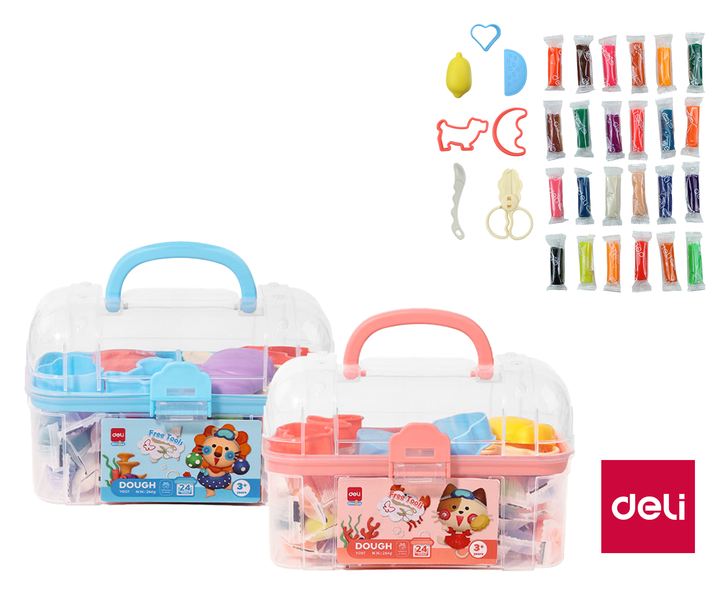 24 jasných a sytých barev- gramáž: 264g- nelepí- nepouští barvu- plastelína obsahuje potravinářské přísady- netoxická, nezávadná- lehké zapracování- měkkou modelínu lze tvarovat tak, aby vytvářela různé tvary- baleno v kufříku společně s 9 formičkami a 2 pomůckami k modelování- ovocná vůně-...
