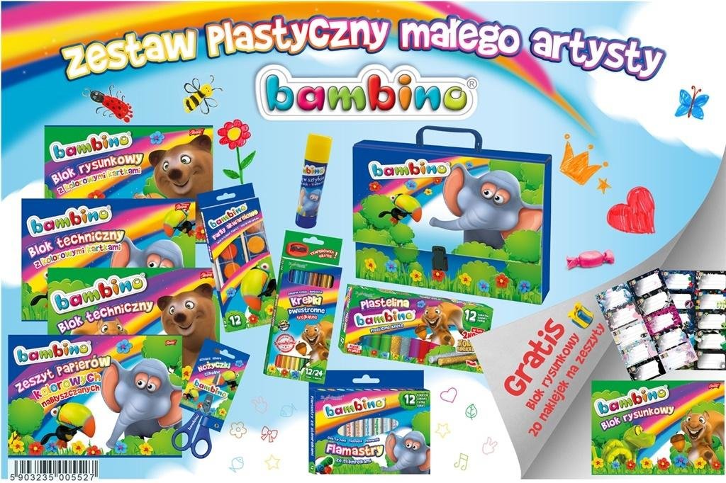 Zestaw zawiera najpotrzebniejsze materiały plastyczne spakowane w praktyczną teczkę z rączką o wymiarach 32 x 24,8 x 5 cm. Jest doskonałym pomysłem na: spędzenie wolnego czasu kreatywną zabawę naukę w domu rozwój motoryki małej prezent z okazji urodzin, Dnia Dziecka,...