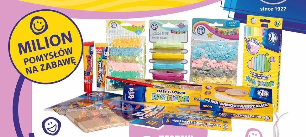 Zestaw Pastelowe Sny zawiera:- farby pastelowe 12 kolorów 20ml,- modelina pastelowa z brokatem Astra 6 kolorów,- glina samoutwardzalna Astra 460g - biała,- kredki ołówkowe dwustronne pastelowe 12=24,- confetti cekinowe kółka na blistrze - mix 5 kolorów pastelowych - 1000 sztuk,- pastelowe...
