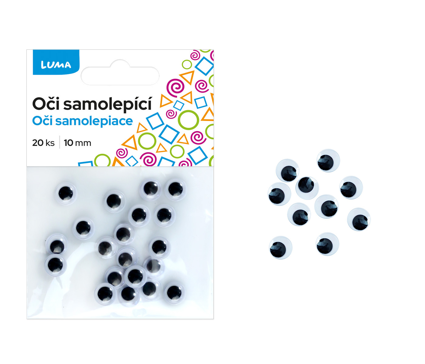 Tieto okrúhle oči s priemerom 10 mm sú ideálnym doplnkom pre všetky vaše kreatívne tvorenie. Pridajte vašim výtvorom živosť a humor vďaka pohyblivej vnútornej časti oka, ktorá dokonale podčiarkne každú dekoráciu i papierový projekt.