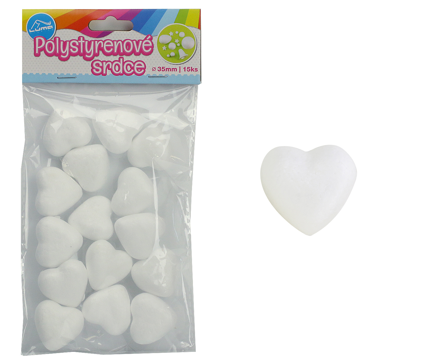 polystyrenové srdce- vhodná k sezónním dekoracím, aranžování - srdce lze různě dekorovat, pomalovat, polepit - rozměr: 35mm- 15ks v balení prečítať celé