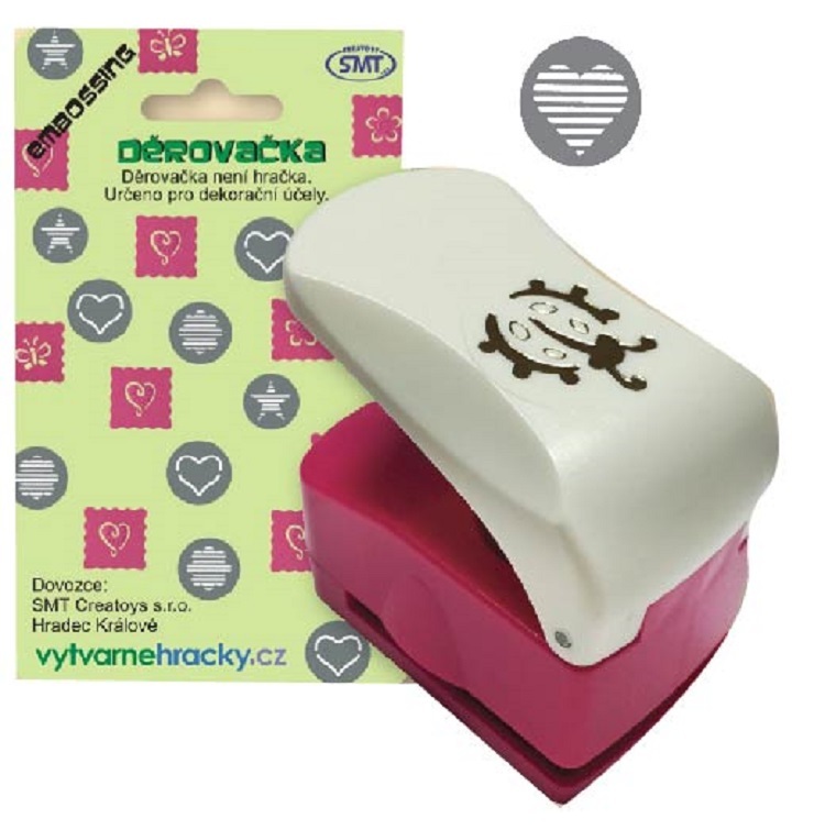 Děrovačka pro výtvarnou tvorbu. Velikost výseku 25 mm.Postup:1. Pracujte s děrovačkou na pevné a rovné ploše.2. Vložte papír vhodné tloušťky - 180-220 g/m2 a zatlačte na páku statickým tlakem. Nikdy ne úderem na páku.3. Po proděravění opatrně vytáhněte zbylý papír.4. POUŽÍVEJTE POUZE NA PAPÍR....