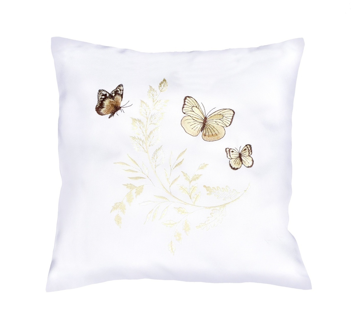 Návlek na polštář, Motýli a krémový list vyšívaný, bílý, 40 x 40 cm