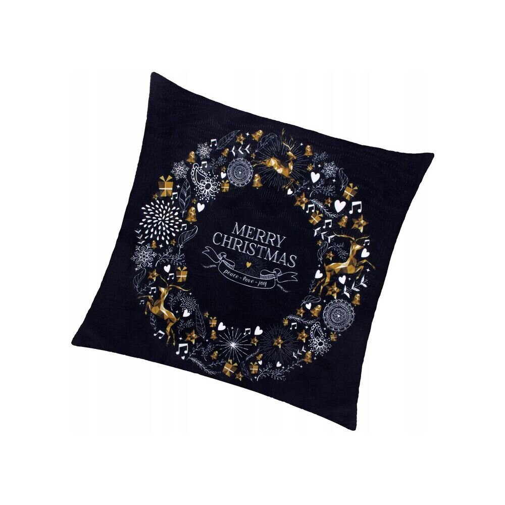 Oboustranný vánoční potah na polštář s rozměry 40x40 cm. Nádherný vzor s vánoční tématikou a středovým nápisem Merry Christmas. Praktický boční zip, na dotek příjemný materiál.