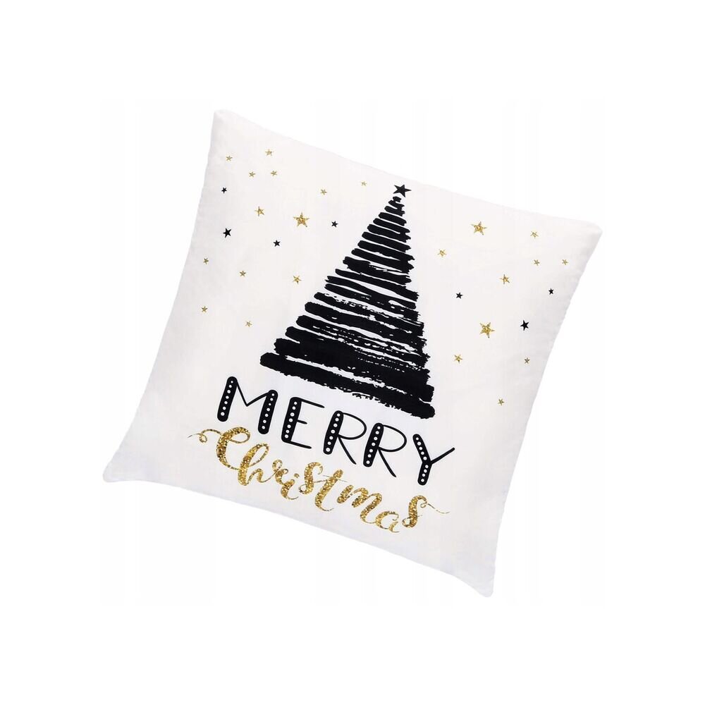 Oboustranný vánoční potah na polštář s rozměry 40x40 cm. Nádherný vzor vánočního stromku s nápisem Merry Christmas. Praktický boční zip, na dotek příjemný materiál.