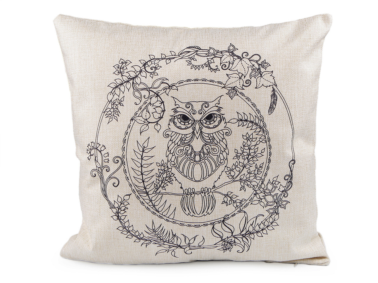 Polštář má lněný vzhled, zapíná se na zip. Předtištěný motiv je pouze na jedné straně.