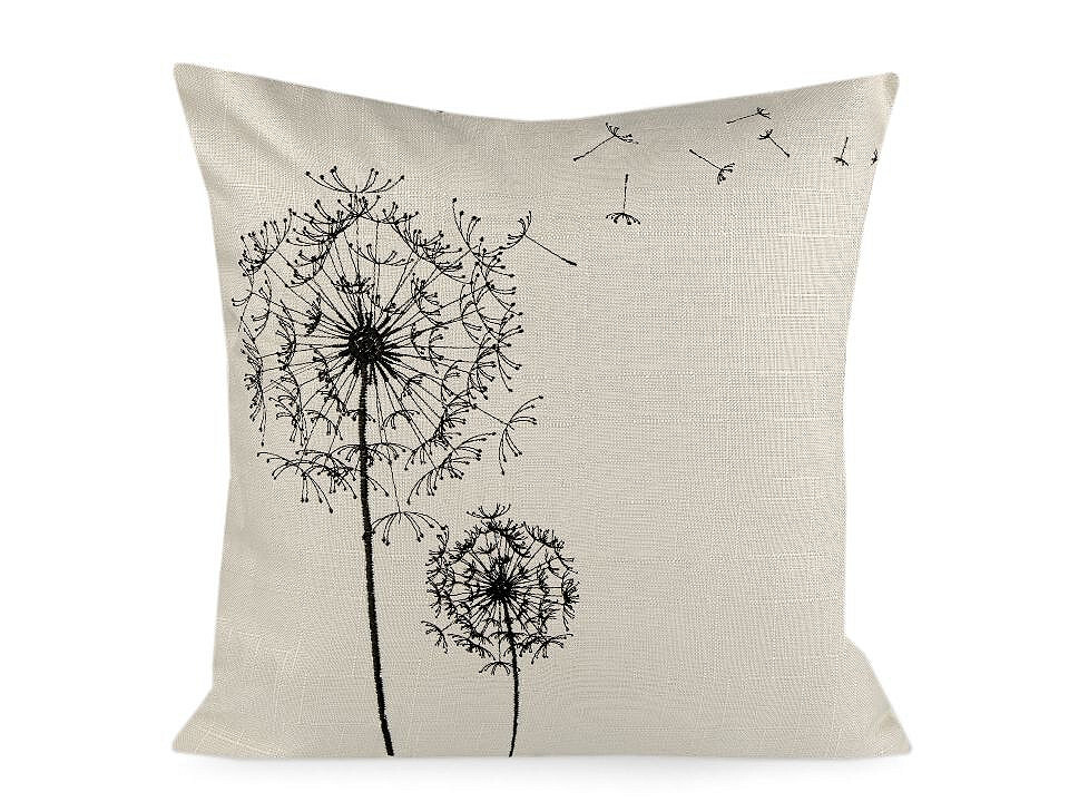 Povlak na polštář s výšivkou 43x43 cm pampelišky - 2 ks - 1 režná černá