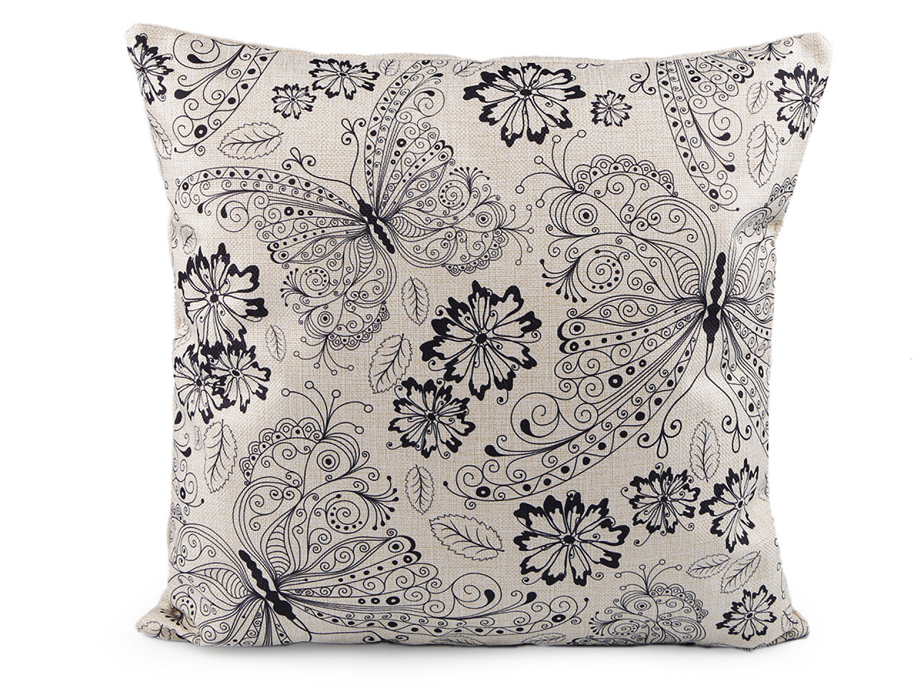 Polštář má lněný vzhled, zapíná se na zip. Předtištěný motiv je pouze na jedné straně.