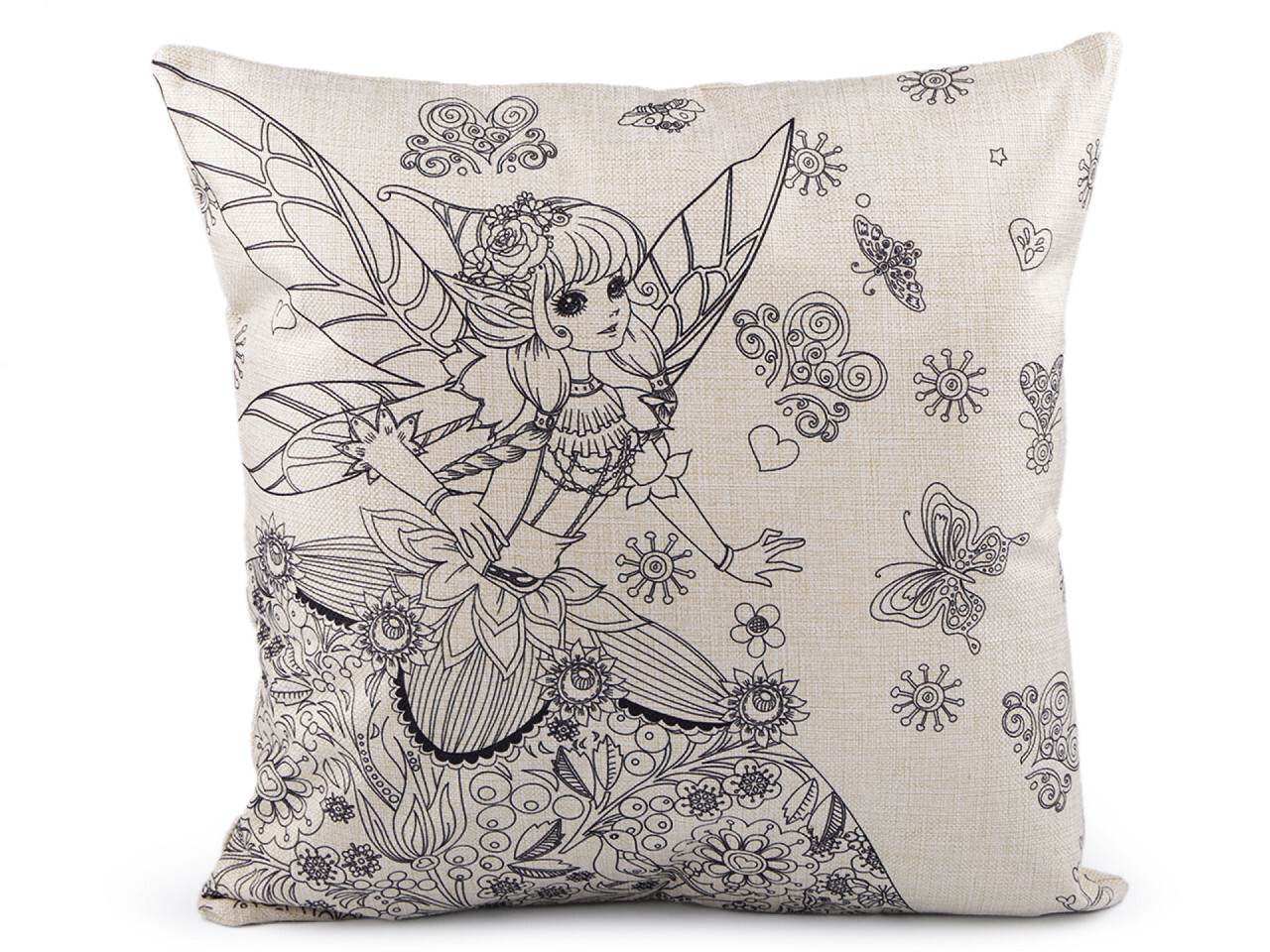 Polštář má lněný vzhled, zapíná se na zip. Předtištěný motiv je pouze na jedné straně.