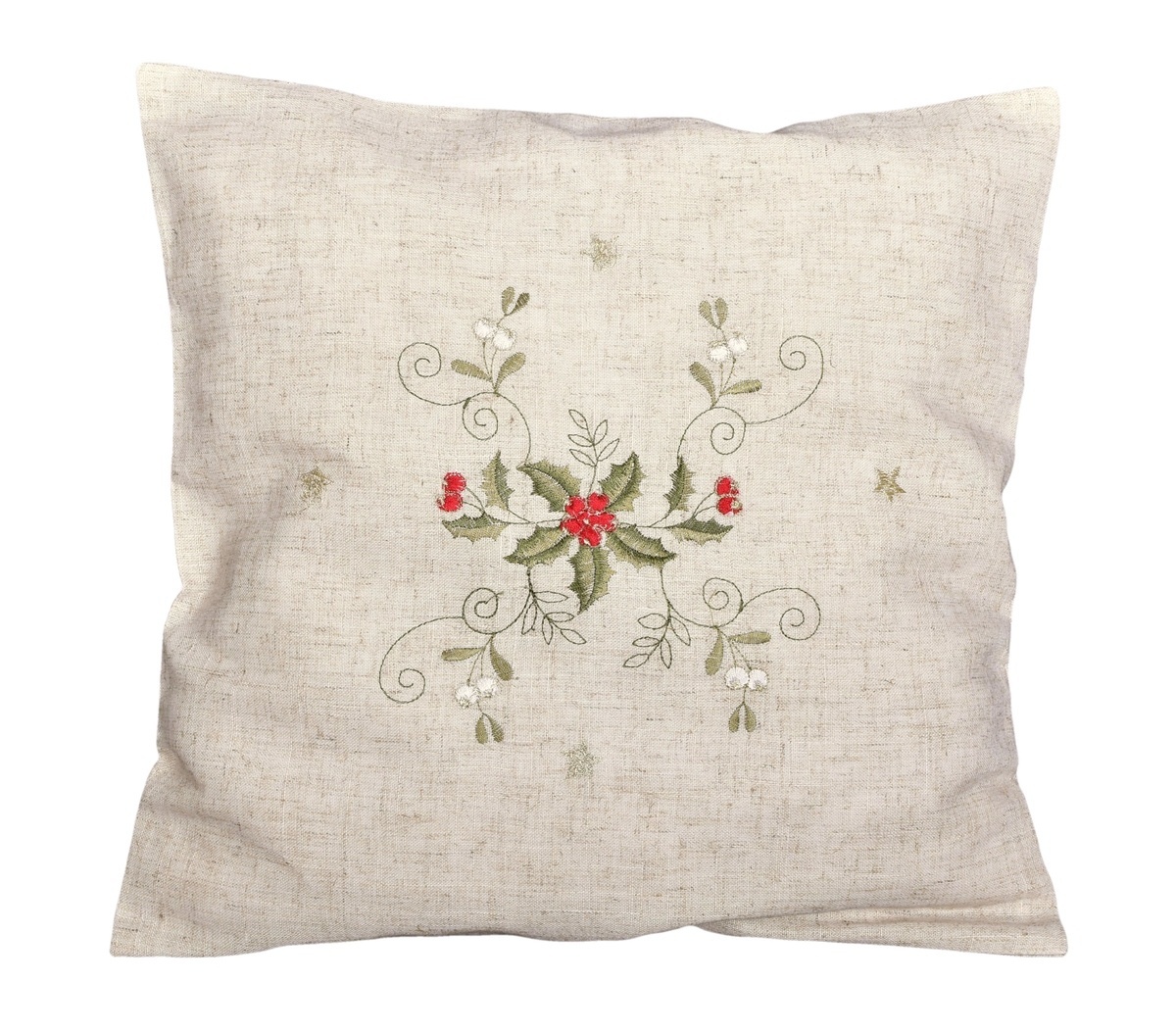 Návlek na polštář, Vánoční cesmína na režném, béžový, 40 x 40 cm