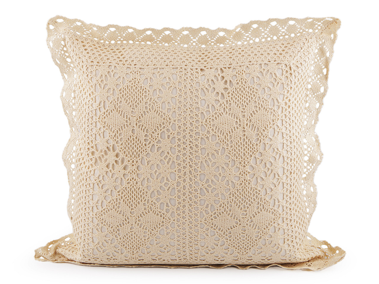 Povlaky na polštáře s paličkovanou krajkou jsou ideální pro vytvoření útulné atmosféry. Dodají vintage nebo boho atmosféru každému interiéru. Na zadní straně se zapínají na zip. Na přední straně polštáře je krajka, zadní strana je jednobarevná. Krajka přesahuje přes okraj textilního potahu.
