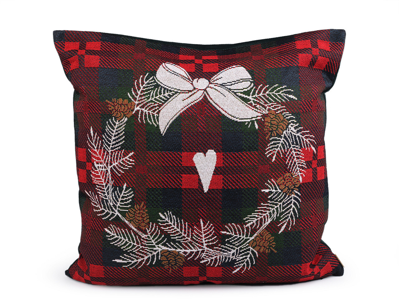 Vánoční gobelínový povlak na polštář 46x46 cm - 1 ks - 7 červená