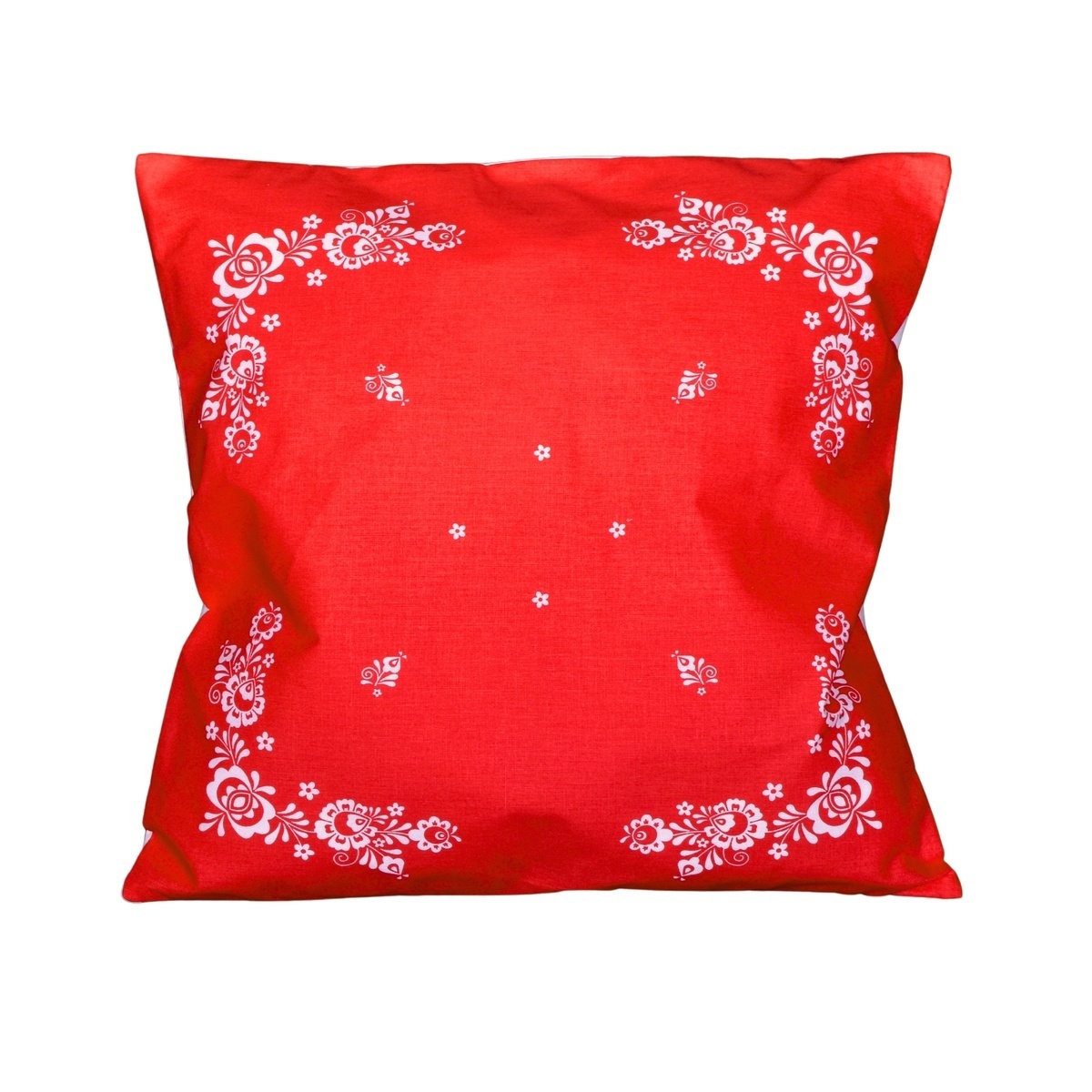 Návlek na polštář, Folk podklad červený, 38 x 38 cm