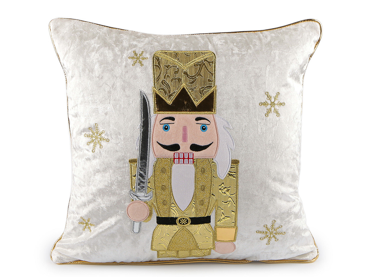Sametový povlak na polštář zdobí vánoční motiv louskáčka. Do interiéru vnese tradiční vánoční kouzlo a přispěje k pohodové atmosféře, jeho jemný a hebký materiál poskytuje příjemný dotek. Povlak je jednostranný, velice kvalitní, motiv louskáčka tvoří pevně našitá aplikace s výšivkou a metalickými detaily. Vločky jsou vyšité. Okraj povlaku je olemovaný zlatou paspulkou. Zapíná se na zip.