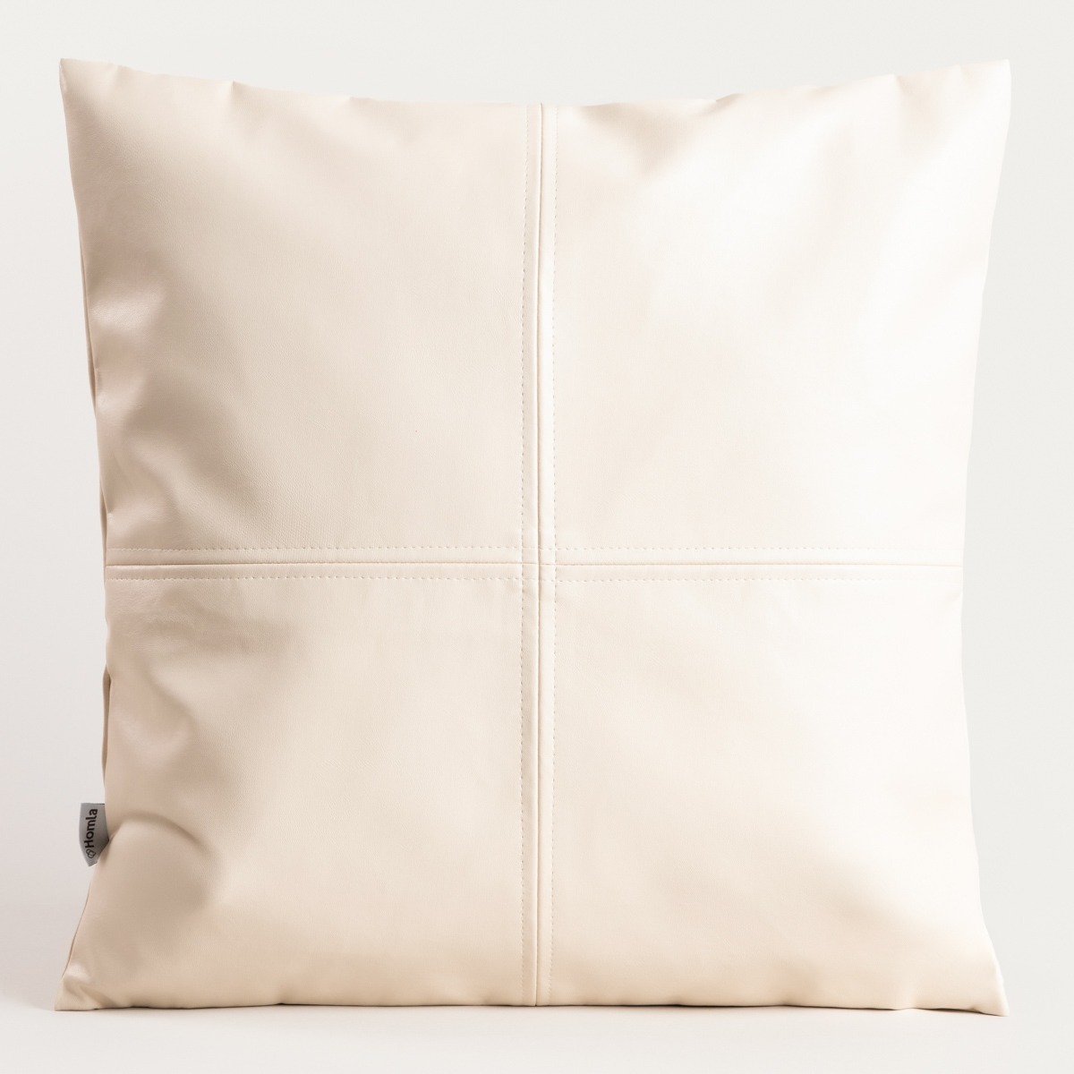 Poszewka | GAVA | z ekoskóry z ozdobnymi przeszyciami ecru | 45x45cm | 749469