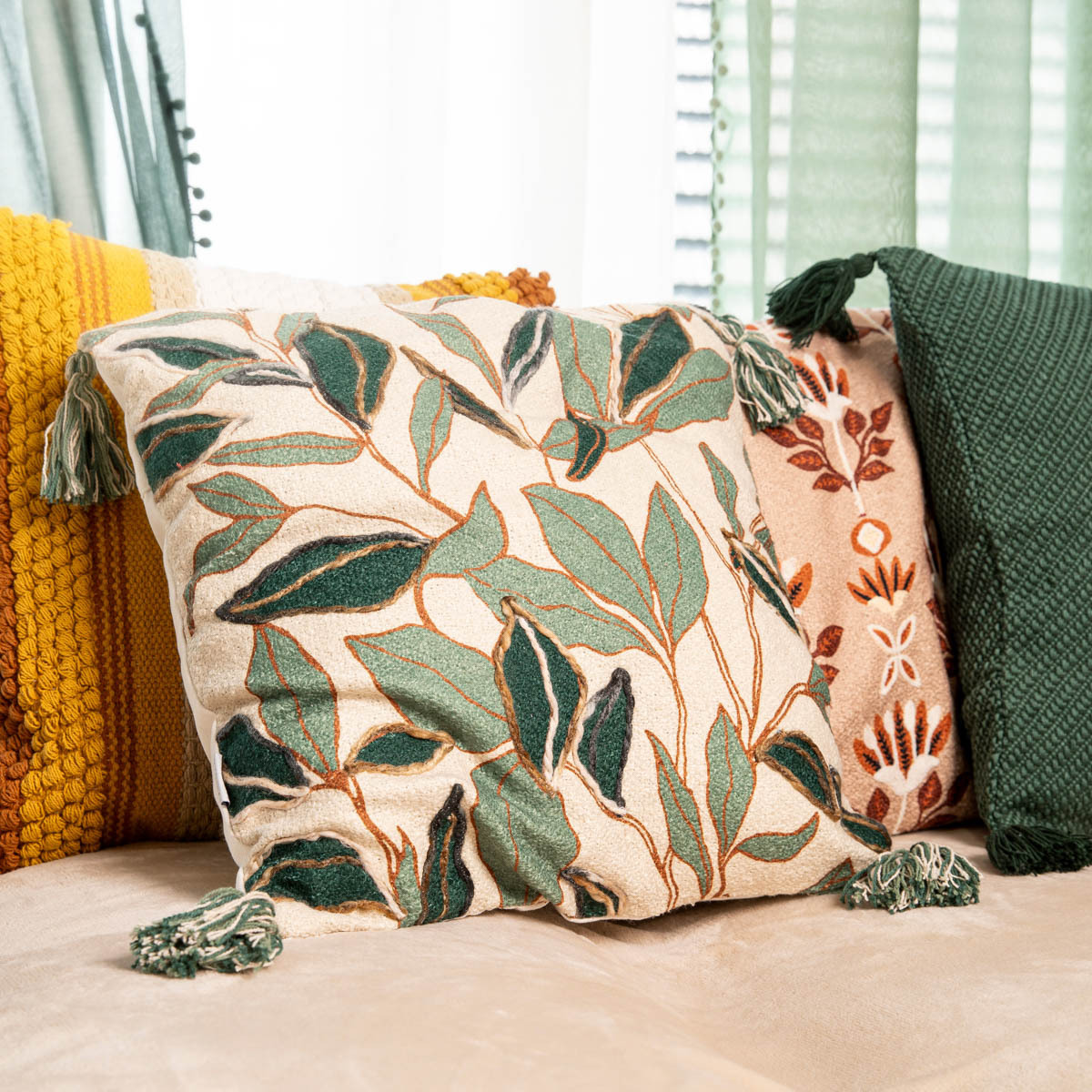 Poszewka | RAGNA | wyszywana w liście z frędzlami | 45x45 cm | 854953