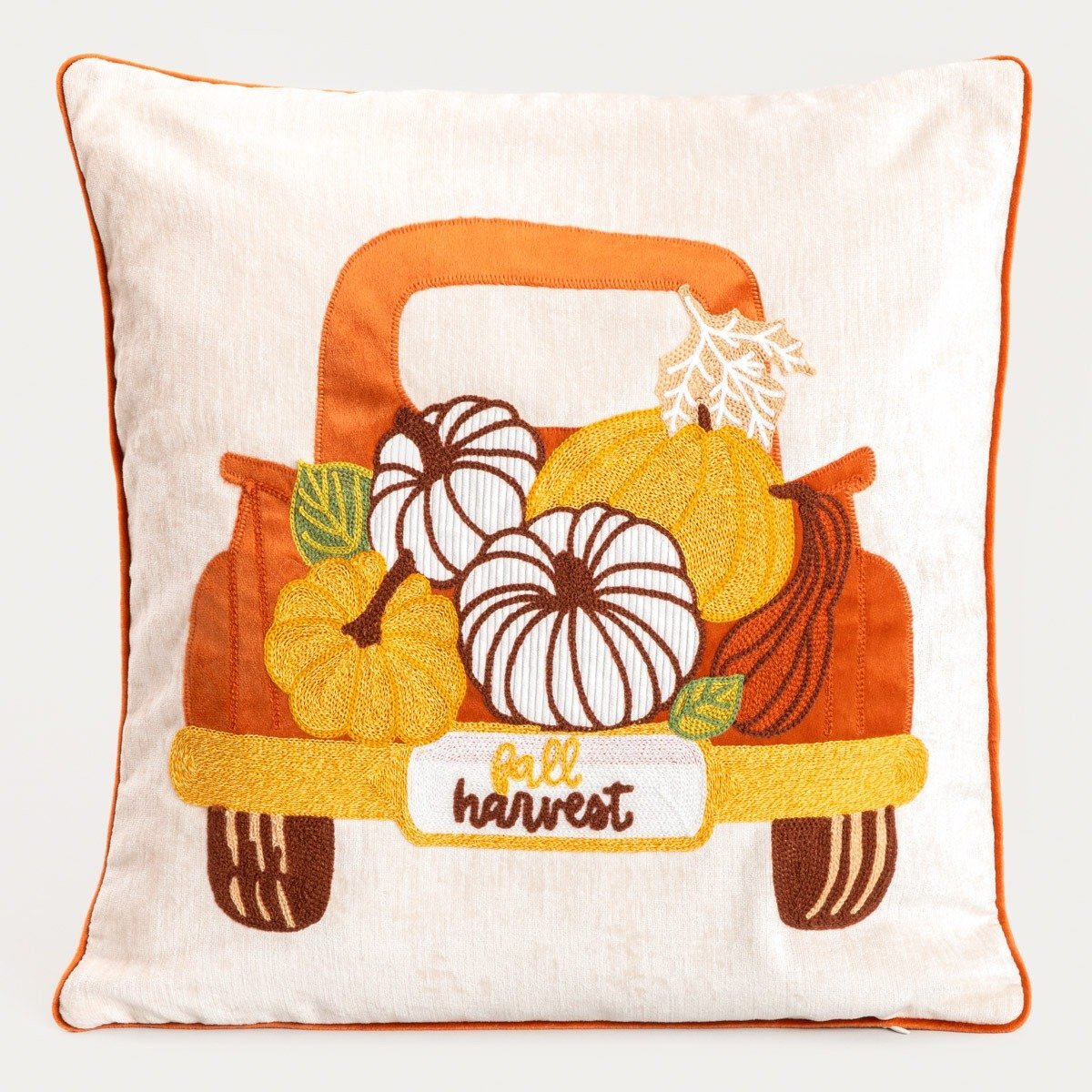 Uroczy jesienny motyw z autem, dyniami i liśćmiCiepła kolorystyka: pomarańcz, beż i brązDekoracyjna lamówka w odcieniu pomarańczowymTrwały i łatwy w pielęgnacji materiałPoszewka z jesienną aplikacją 45 × 45 cmPoszewka AUTOMNE to idealny akcent dekoracyjny na sezon jesienny. Na tle kremowej...