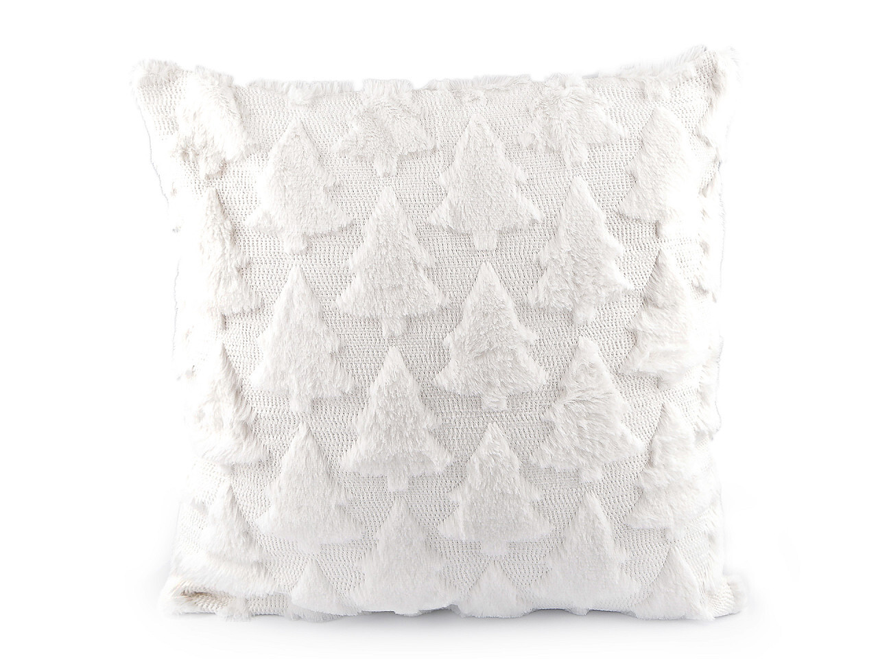 Povlak na polštář zdobí plyšové motivy vánočního stromečku. Do interiéru vnese tradiční vánoční kouzlo a přispěje k pohodové atmosféře. Může být skvělým doplňkem na pohovku, křeslo i postel. Na přední straně jsou plastické chlupaté stromečky, zadní strana je sametová. Zapíná se na skrytý zip.