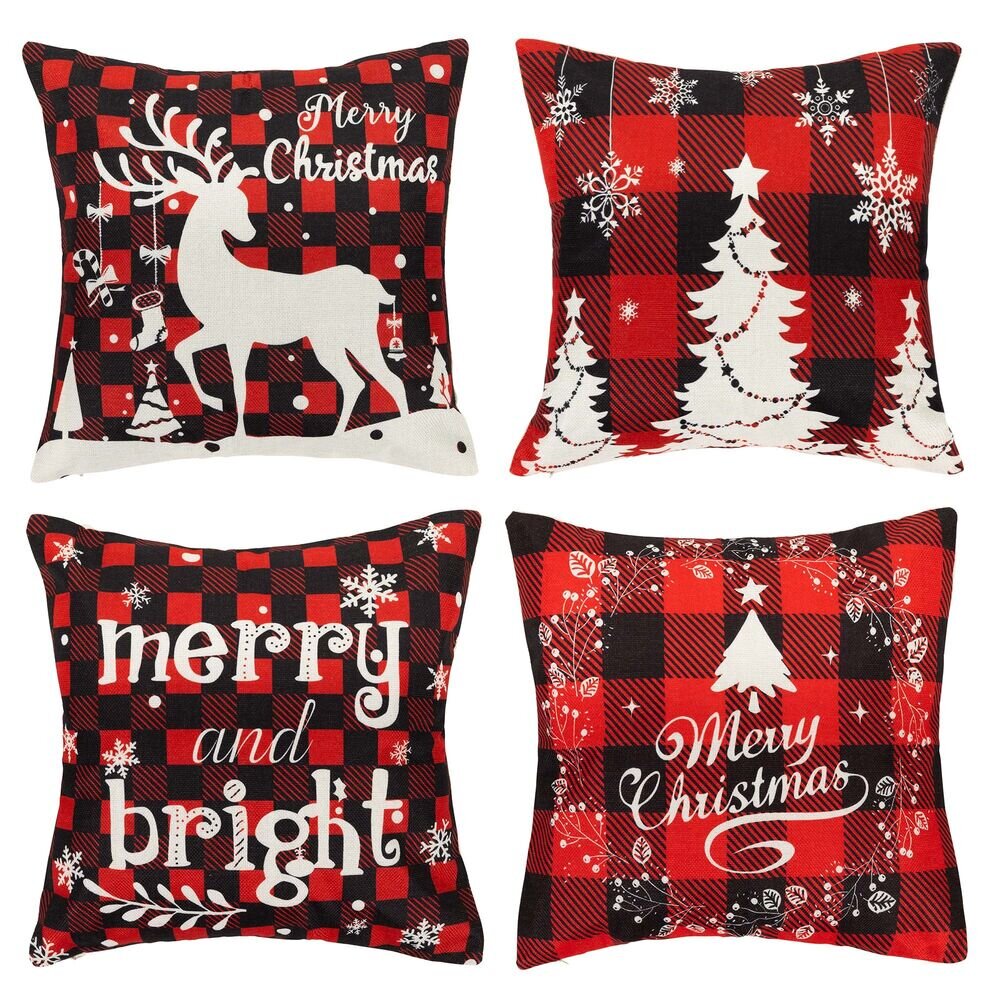 Vánoční povlaky na polštářky 40x40 cm, sada 4ks, bílo-červené