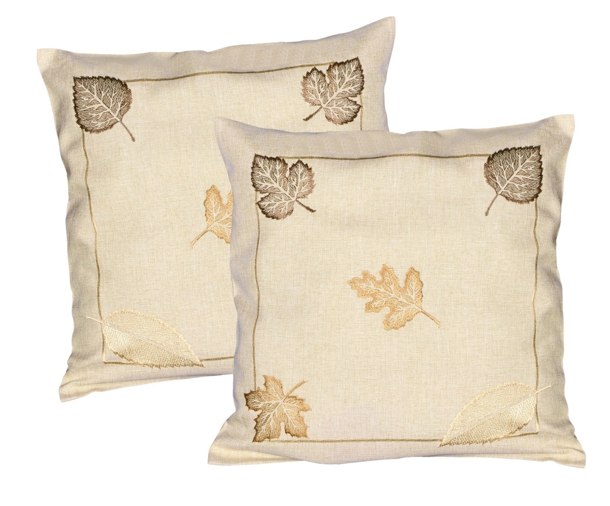 Návlek na polštář, Hnědé listy vyšívané, béžový 40 x 40 cm