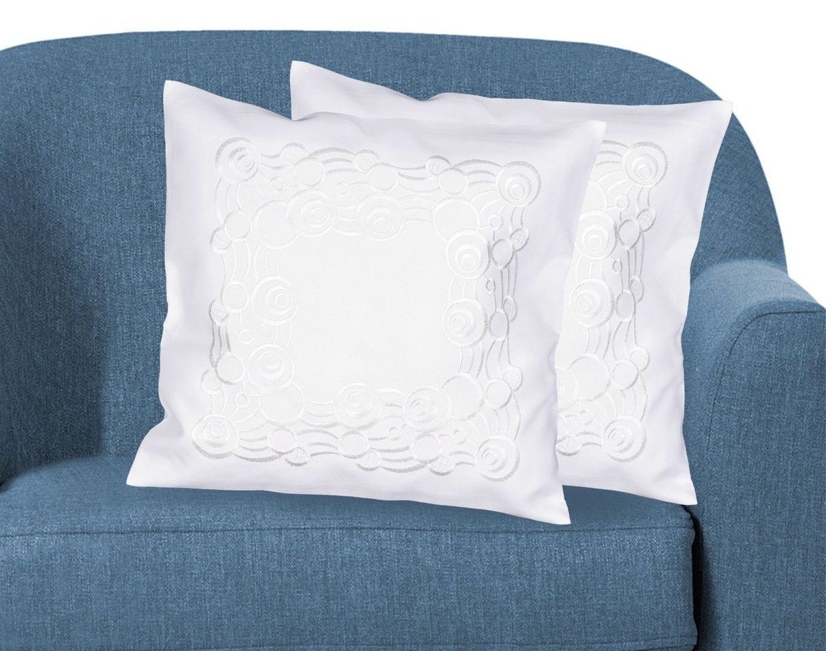 Návlek na polštář, Kruhy vyšívané, bílý, 40 x 40 cm