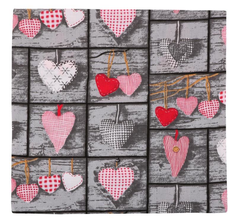 Povláček krepový - srdce šedé, červené - 40x40cm