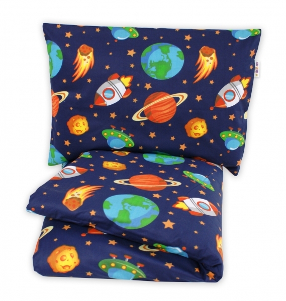Dětské povlečení, bavlna 2D 140x200/70x80 - Vesmír, granátová; 140x200/70x80cm