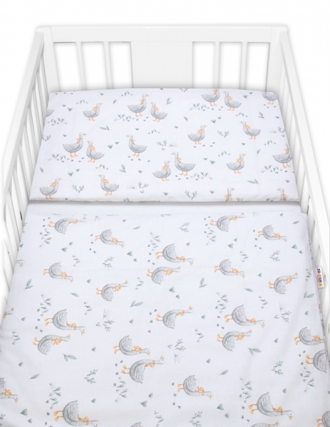 Povlečení do postýlky, bavlna, 2D sada, Husy, bílé; 120x90