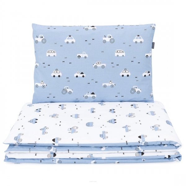 Povlečení do postýlky, bavlna, 2D sada, Auta, jeans/bílá; 120x90