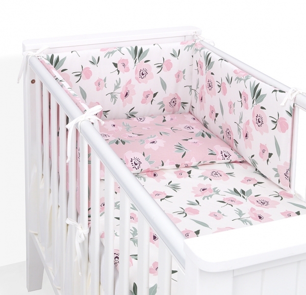 Mantinel s povlečením do postýlky, 3D sada Bavlna, Růže, pudrová/ecru; 120x90