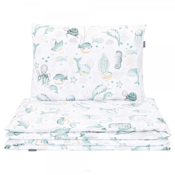 Povlečení do postýlky, bavlna, 2D sada, Oceán, zelená/bílá, 135x100 cm; 135x100