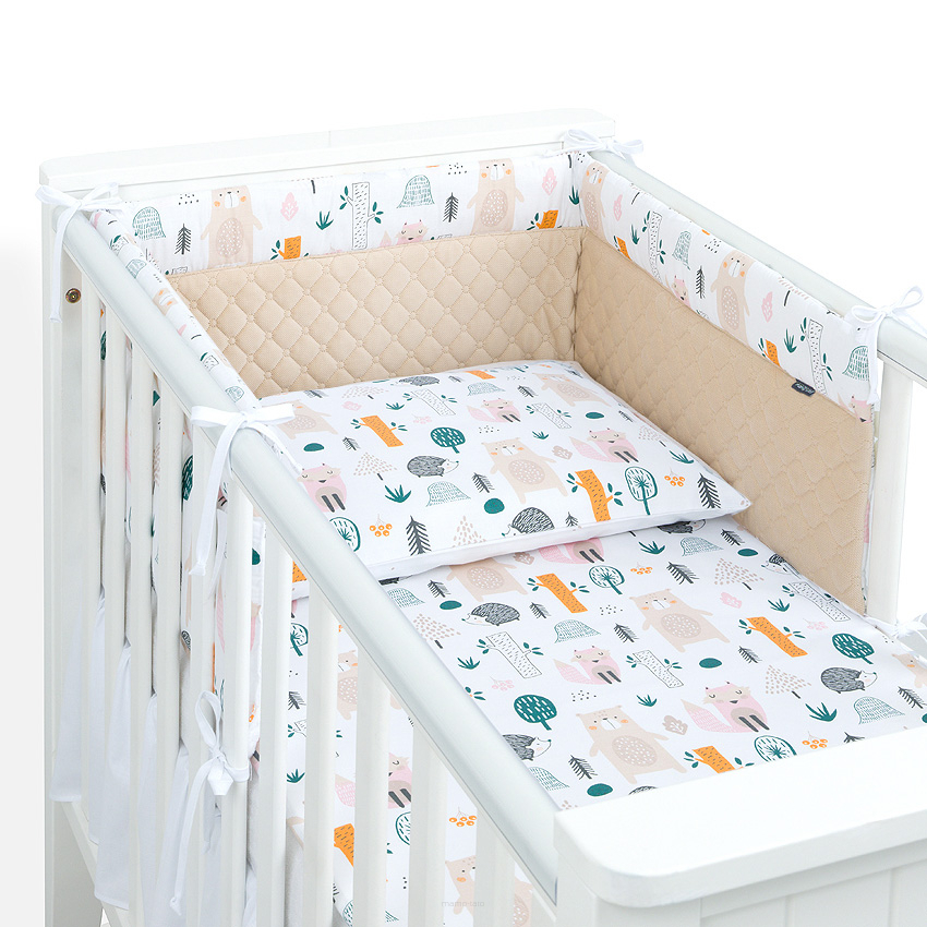 3-dílný set do postýlky Sada obsahuje: Mantinel – dvoubarevný – 30 × 180 cm, upevňuje se pomocí 8 stuh. Povlečení na polštářek – dvoubarevné – 40 × 60 cm. Povlečení na peřinku – dvoubarevné – 135 × 100 cm. Mantinel je vyroben ze 100 % bavlny, která je příjemná a hebká na dotek. Ideální pro...
