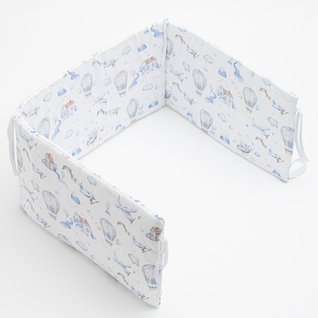 Praktický mantinel do postýlky New Baby Romance s potiskem pohádkového dobrodružství v oblacích. Je vyroben z měkkého, příjemného materiálu. Složení: 100% bavlna. Výplň: 100% polyester. Upevnění k postýlce za pomocí stuh. Rozměr: cca 150 cm.Tyto výrobky jsou bezpečné, protože:- přírodní bavlna...