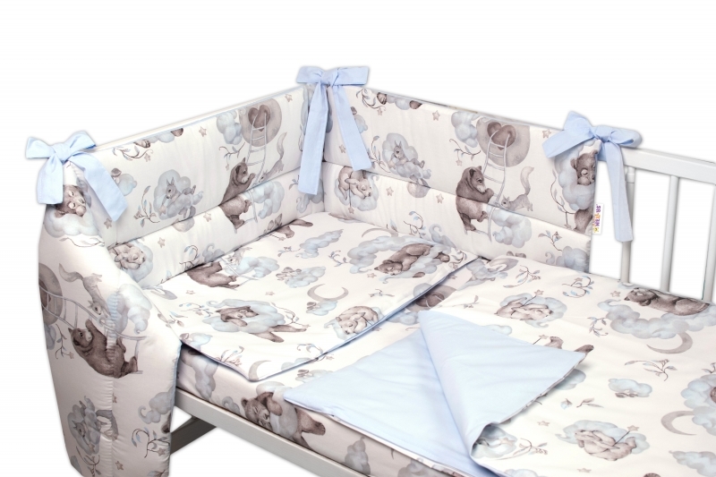 3-dílná sada Mantinel s povlečením Baby Nellys, Zvířátka na mráčku, modrá/bílá, 135x100 cm; 135x100