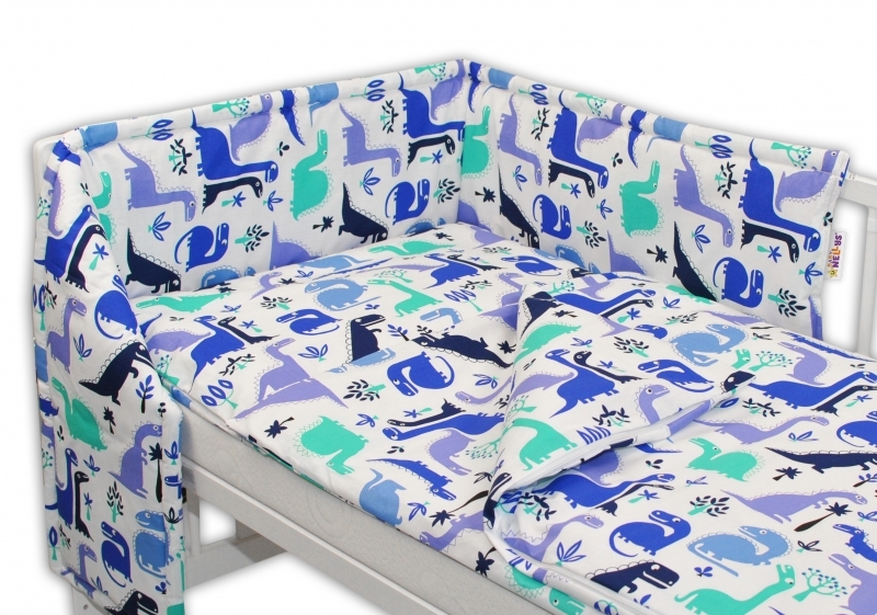 Baby Nellys 3-dílná sada mantinel s povlečením 135x100 - Dinosaurus modrý; 135x100