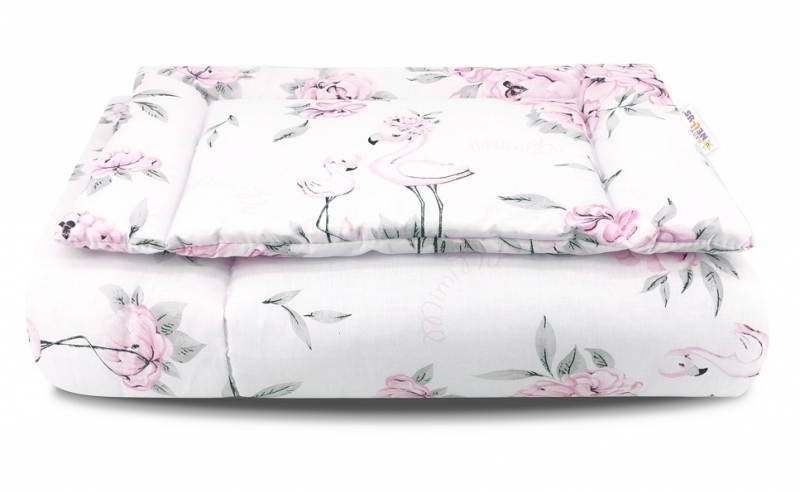 Baby Nellys 2-dílná sada do postýlky s výplní, Plameňák - růžová, 135x100 cm; 135x100
