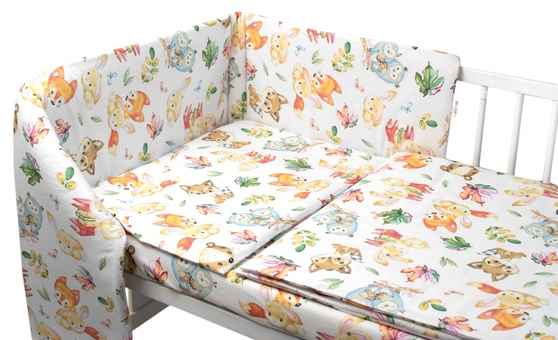 Mantinel s povlečením Premium, 3D sada, Cute Animals - bílá, 120x90 cm; 120x90