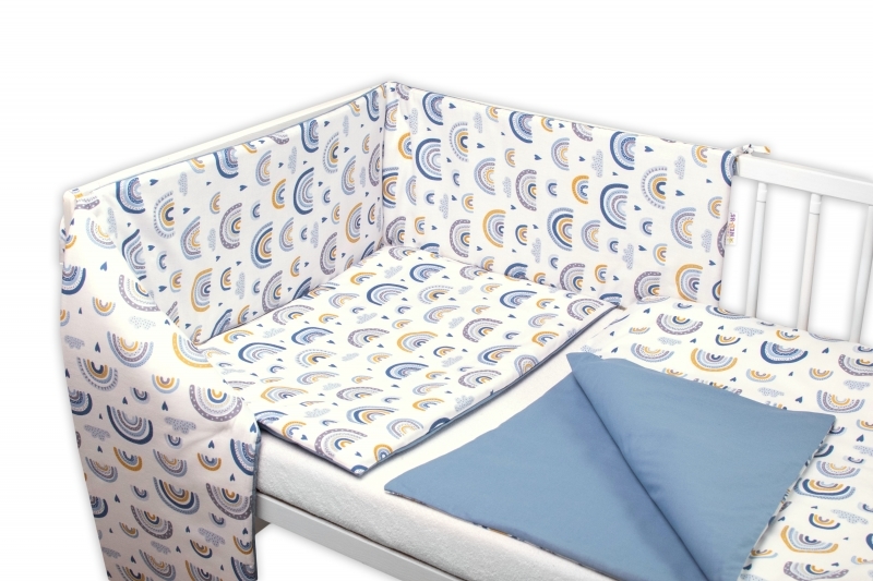 Mantinel s povlečením 3D, Duha, pastelová s potiskem/modrá, Baby Nellys; 120x90