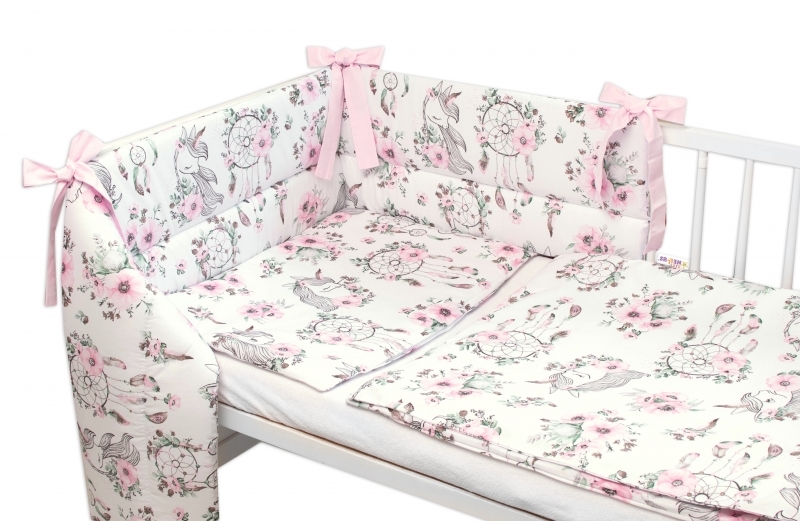 BABY NELLYS 3-dílná sada Mantinel s povlečením, Sny Jednorožce, bílá/růžová, 135x100 cm; 135x100