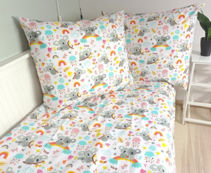 Baby Nellys 2-dílné bavlněné povlečení - Koala a duha, bílá, 140 x 200/70 x 90; 140x200/70x90cm