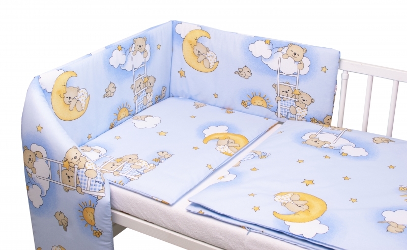 Mantinel s povlečením Premium, 3D sada, Medvídek na žebříku, modrý, 120x90 cm; 120x90