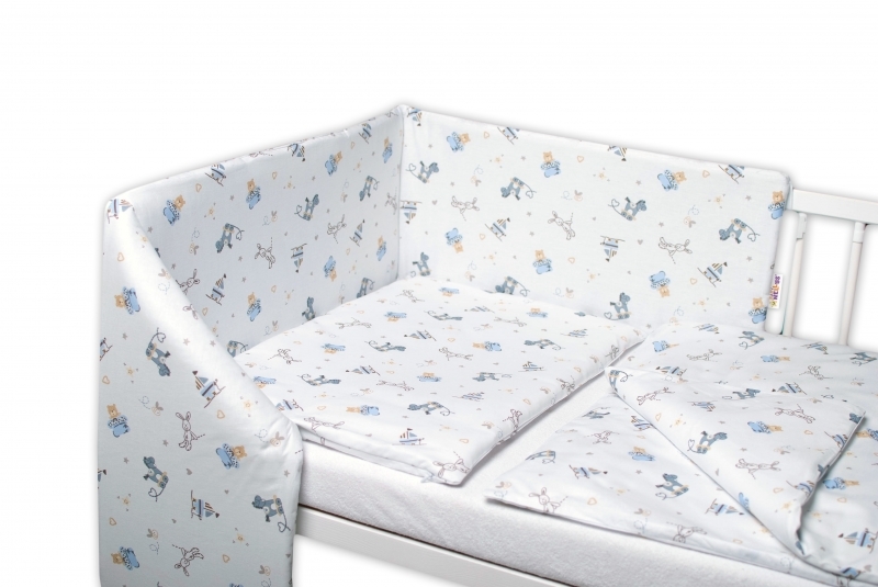 Baby Nellys 3-dílná sada, mantinel s povlečením Hračky - bílá, 135x100 cm; 135x100