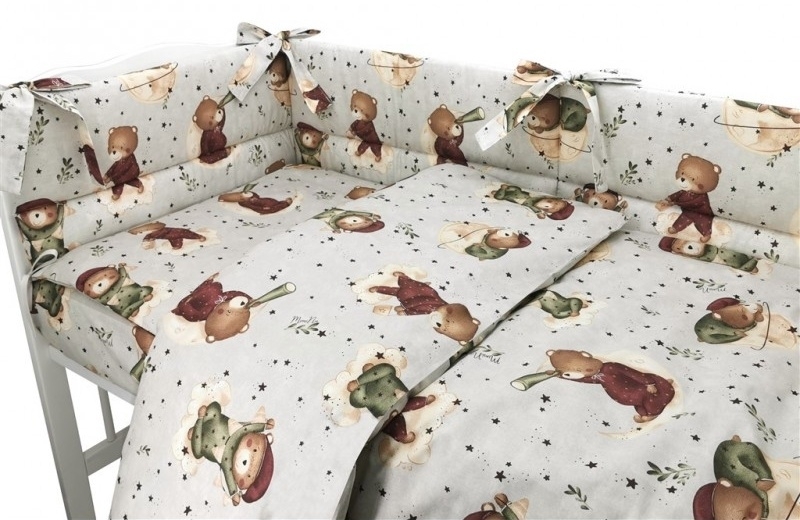 Materiál: Povlečení - 100% bavlna.Mantinel: Svrchní část 100% bavlna, výplň duté vlákno - hypoalergenní.I. Jakost.Sada obsahuje:Rovný mantinel cca 30 x 180 cm.Povlak na peřinku: cca 120 x 90 cm, 135 x 100 - dle výběru.Povlak na polštářek: cca 40 x 60 cm.Zapínání povlečení:Bezpečné, není na...
