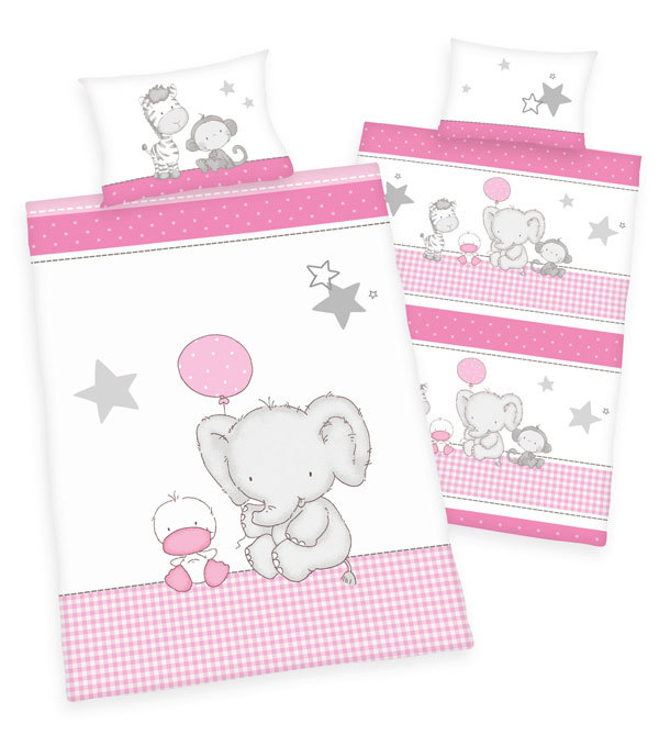 HERDING Povlečení do postýlky Slůně růžové 100/135, 40/60Materiál: 100% BavlnaRozměr: 1x 100/135, 1x 40/60 cmDětské bavlněné povlečení do postýlky, motiv peřiny i polštáře je z každé strany jiný, zapínání peřina na zip, polštář hotelový, možnost praní na 60°C prečítať celé