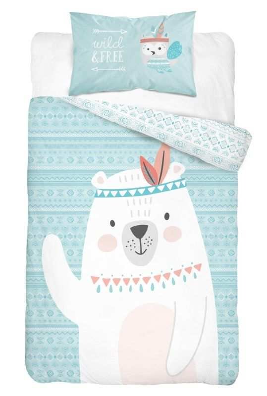 DETEXPOL Povlečení do postýlky Medvídek Indián green Bavlna, 100/135, 40/60 cm