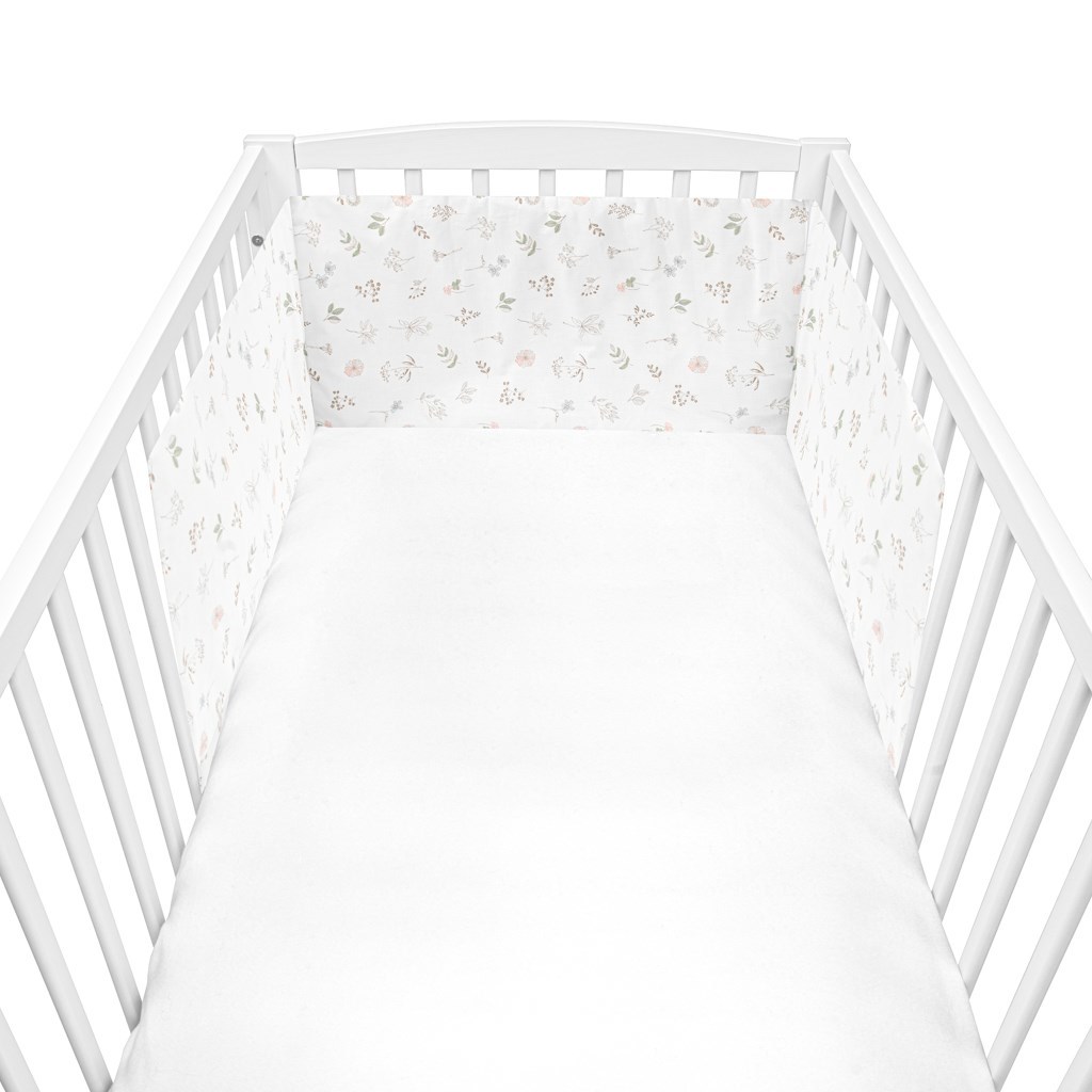 Moderní a praktický mantinel do postýlky New Baby Zoe. Krásný mantinel ozdoben obrázky květin. Je vyroben z měkkého, příjemného materiálu. Složení: 100% bavlna. Výplň: 100% polyester. Upevnění k postýlce za pomocí stuh. Rozměr: cca 180x32 cm.Tyto výrobky jsou bezpečné, protože:- přírodní bavlna...